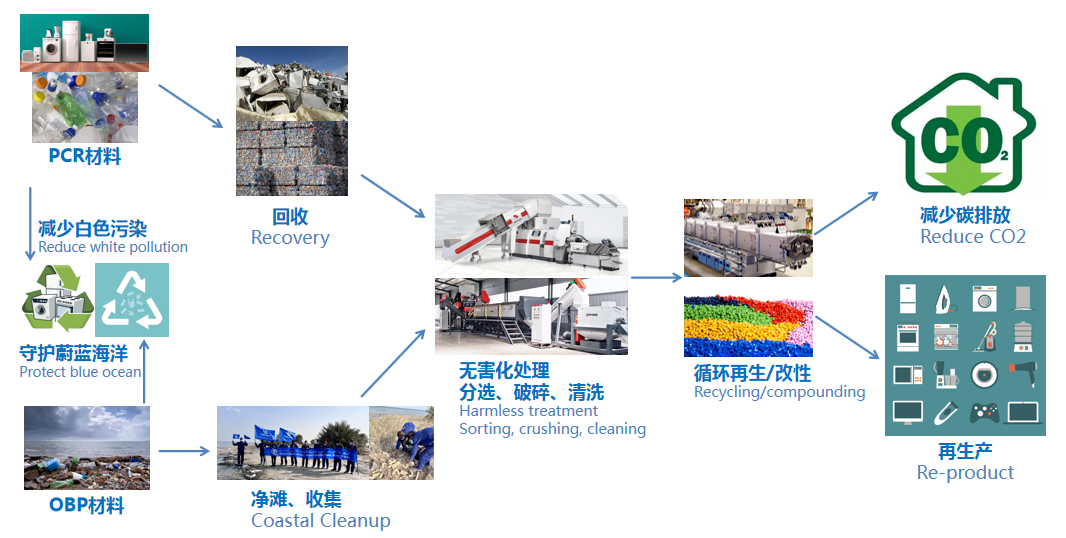 那么使用PCR塑料与原生塑料混合,再用于制造塑料制品。这种方式不仅降低了二氧化碳排放,还减少了能源的消耗,有助于保护环境。这也是助力“碳中和”的重要方向之一。